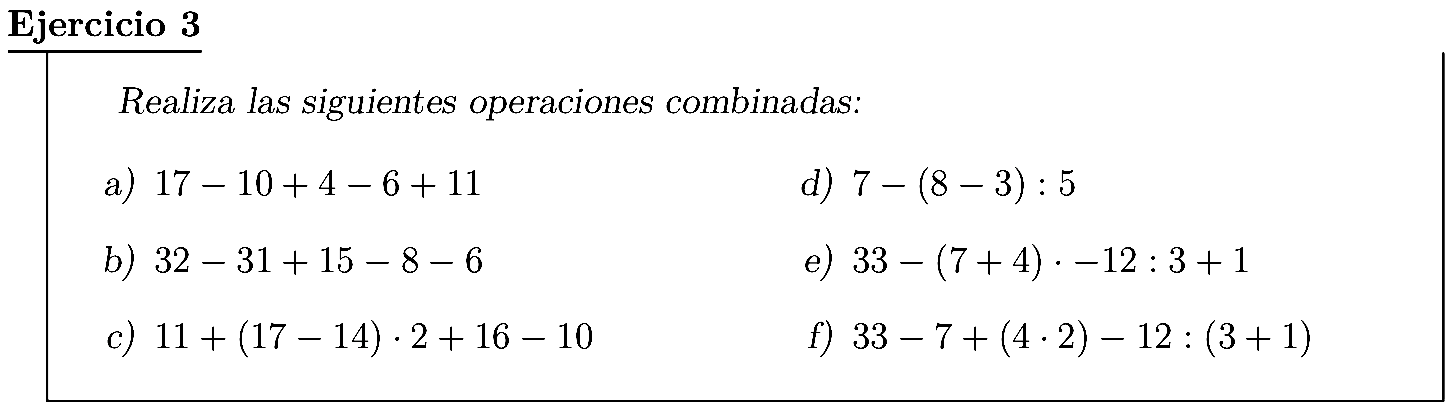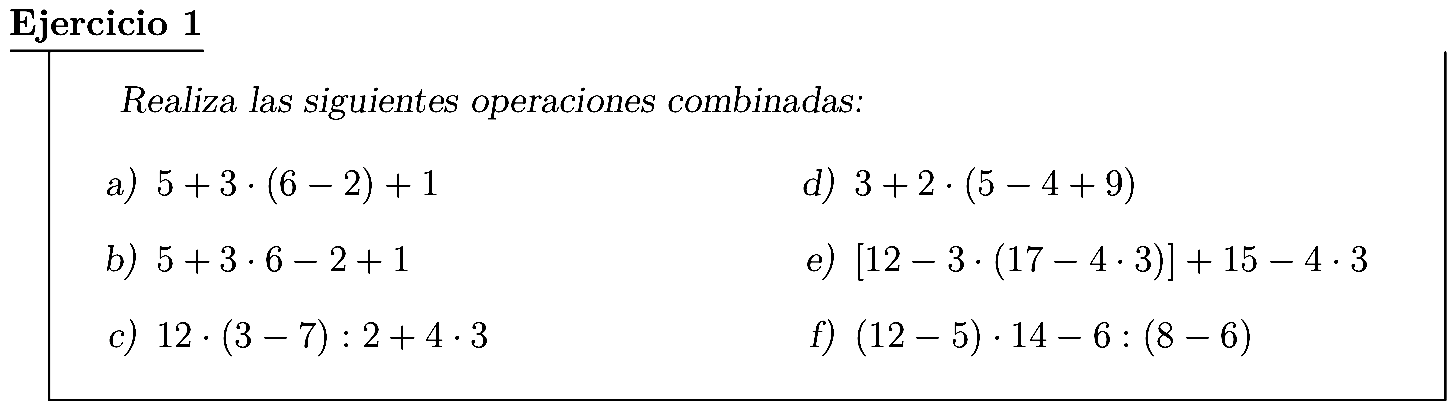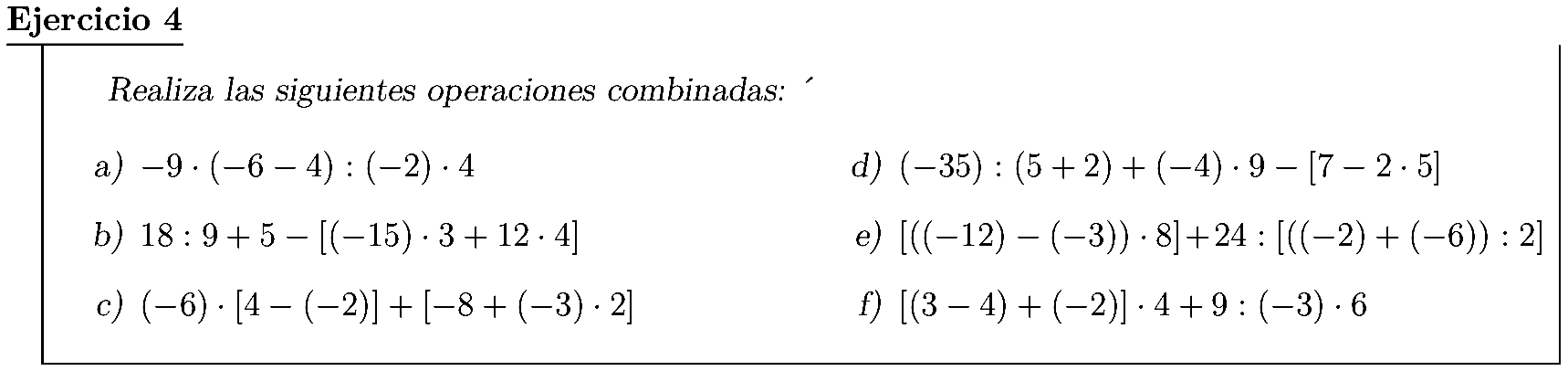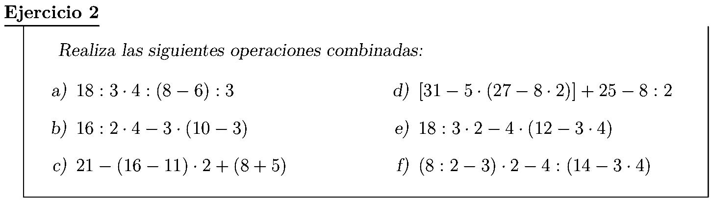Para realizar operaciones combinadas hay que efectuar primero las operaciones entre paréntesis y corchetes y luego el resto siguiendo esta jerarquía:
